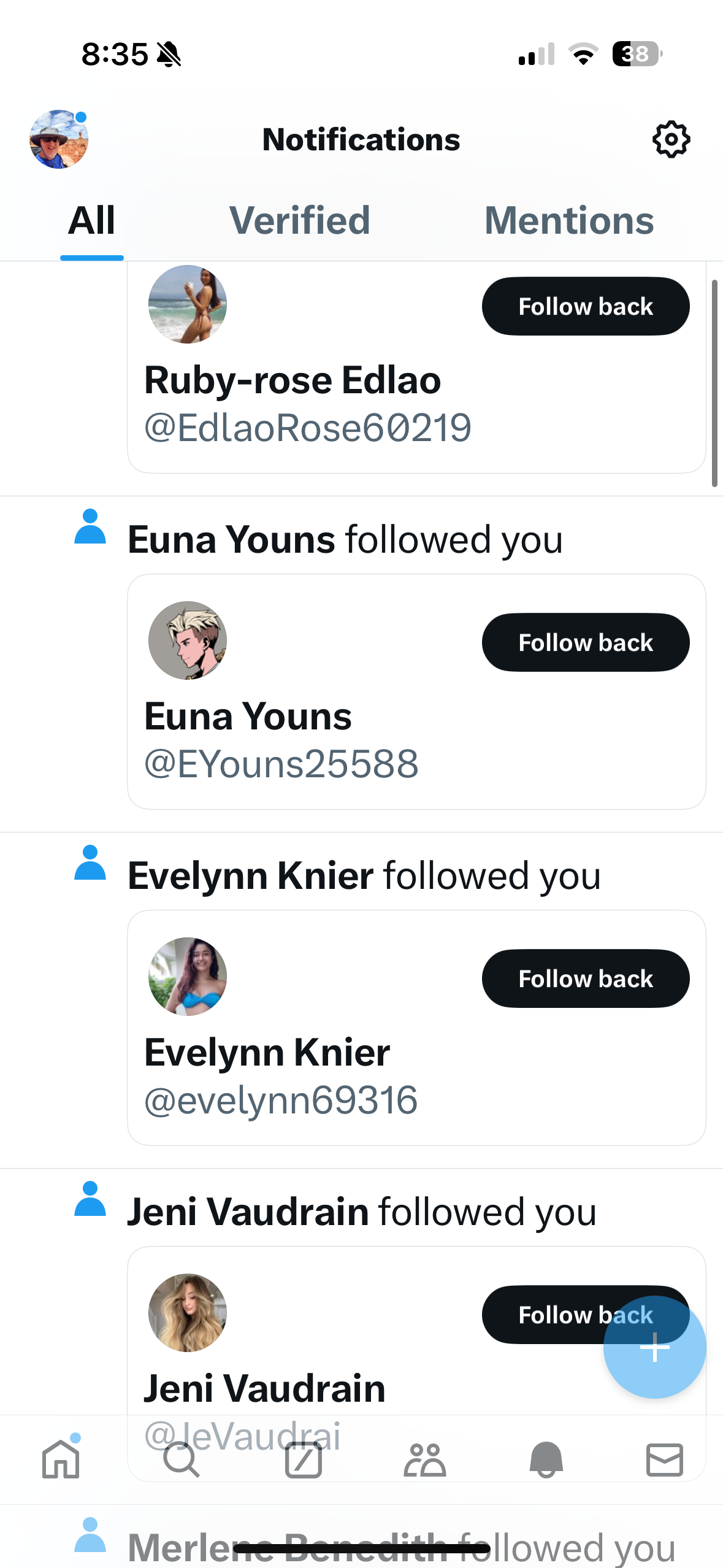 First let’s talk about the bots and functionality. In fairness spam and bots are a problem in some form on all platforms but it’s been particularly bad on Twitter/X. When Musk took over the company he fired 6500 out of 8000 employees. There’s no doubt there was fat to be trimmed, and the fact that the platform didn’t completely implode afterwards has me hopeful that maybe, just MAYBE, he’s the right guy to head up a Department of Government Efficiency. But in my opinion you have a lot to answer for when you cut that many people without then offering a clean platform to use. Here’s my last 4 followers just in the last week on X: