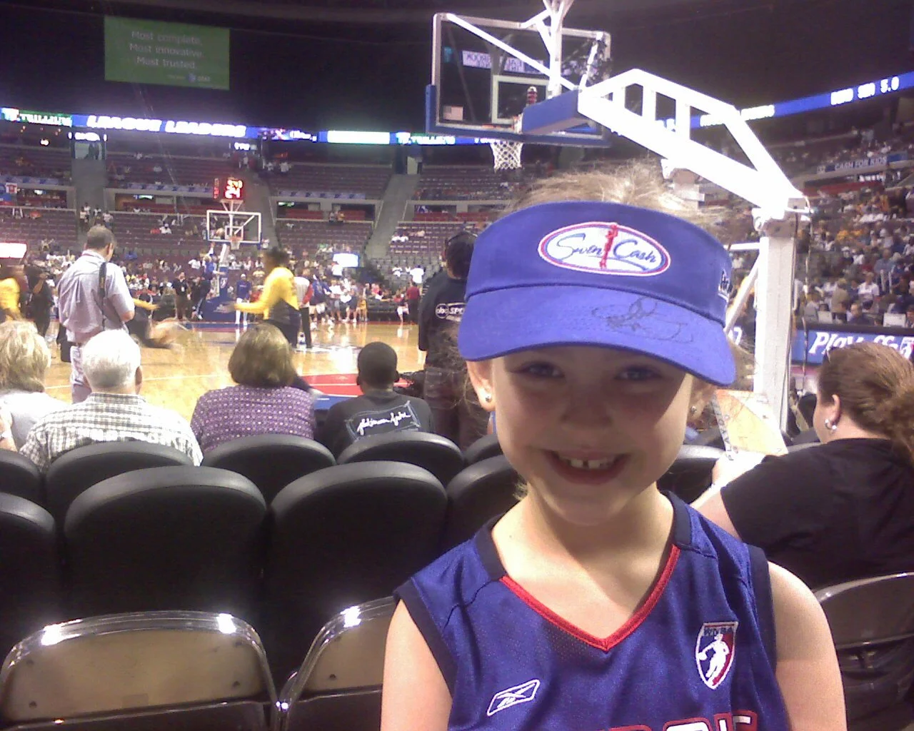 Left to right: Lacey getting Cheryl Fordās autograph at a Shock game in 2007, Lacey and her friend Lissy - jerseys and face paint, Lacey with her Swin Cash visor!
